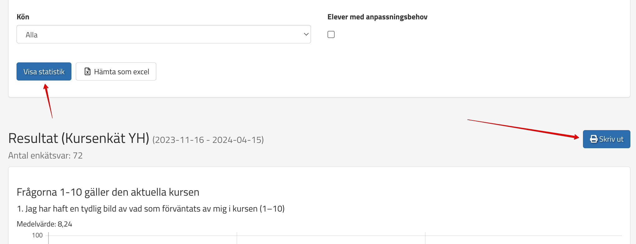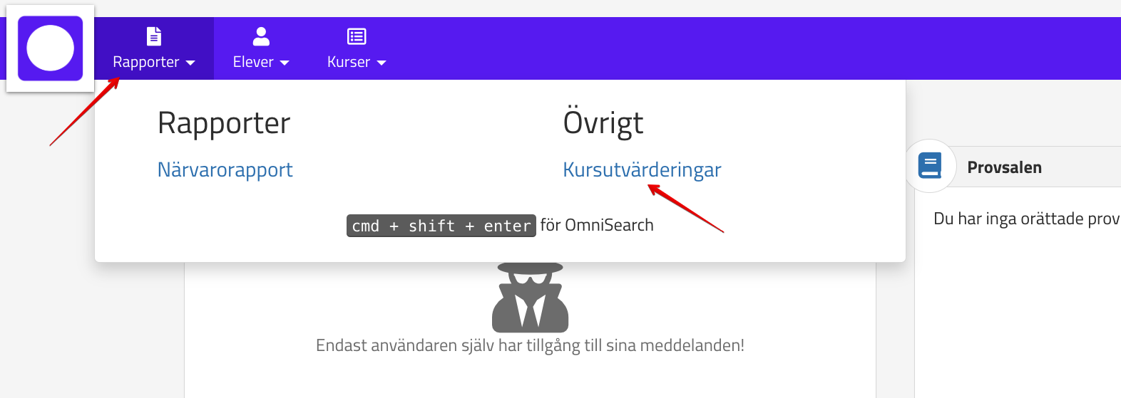 För att dra ut deltagarupplevelsen för tidsperioden 1:a juli - 15 november 2024 går ni till modulen Kursutvärderingar som finns under ikonen Rapporter: