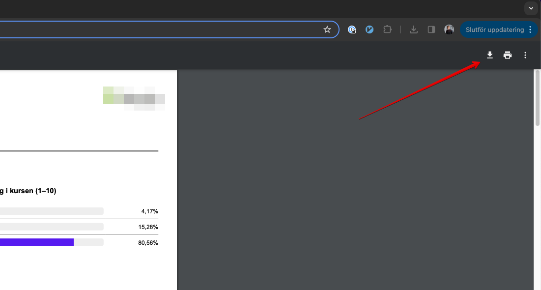Då öppnas en ny flik med en PDF som ni kan spara ner genom att trycka på pilen som finns i högra hörnet (om du använder chrome):