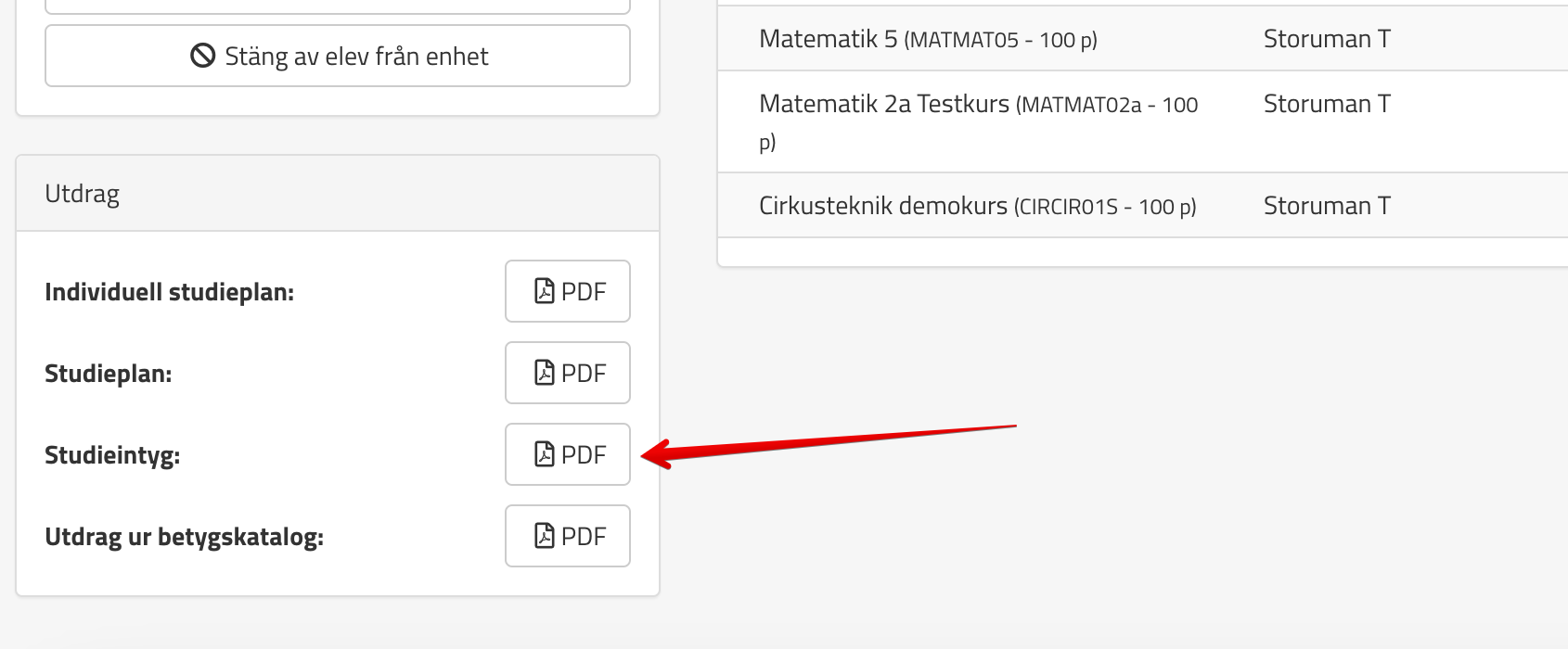 Vi kan även aktivera så att eleverna kan hämta intygen själva. I så fall kontaktar ni supporten om ni önskar att det ska vara möjligt.