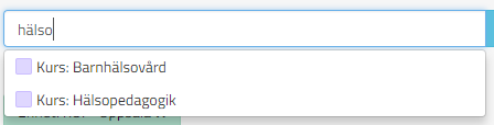 Nu listas alla kurser som har ordet "hälso" i sig, och jag klickar på Hälsopedagogik för att välja det.