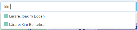 Jag skriver "Kim" i sökfältet och får då automatiskt fram alla lärare som finns i systemet och har "kim" i sitt namn: