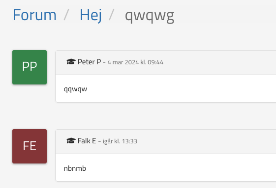 I forum visas endast elevens förnamn + första bokstaven i efternamnet. Se bild nedan: