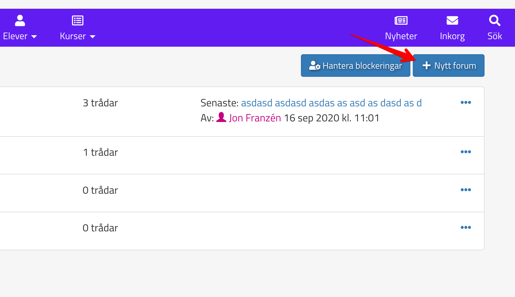 Välj Elever och Forum. Tryck sedan på "Nytt forum". Forumet kommer endast att synas på den enheten i omniway som du är registrerad på.
