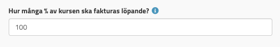 Vid löpande dyker denna inställning upp där ni kan styra hur många procent av kursen som ska faktureras löpande och hur mycket som ska betalas ut vid avslut. Om ni skriver in 70 nedan så kommer 30% att betalas ut vid kursens avslut.