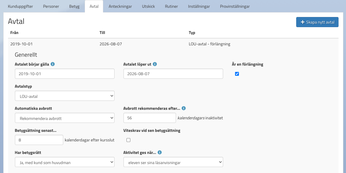 Här väljer du vilken typ av avtal detta är. De alternativ som finns är: