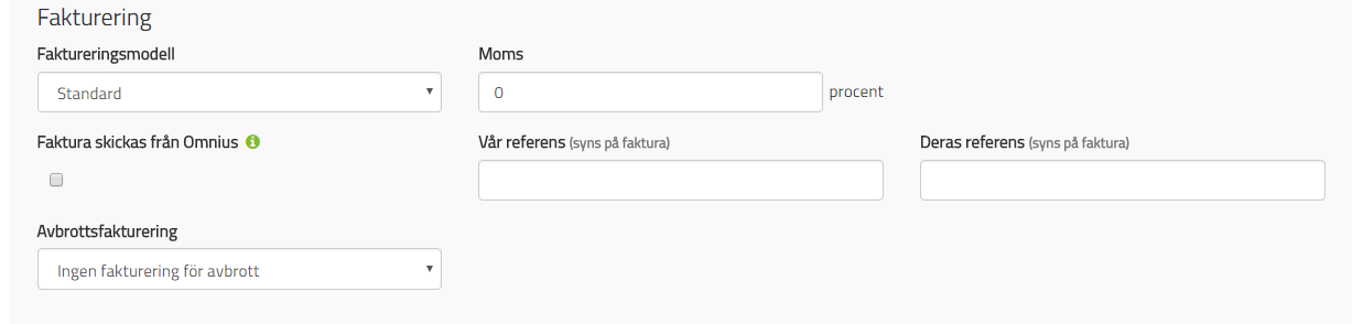 • Ingen fakturering för avbrott - Välj detta om avtalet att avbrott inte ska faktureras.