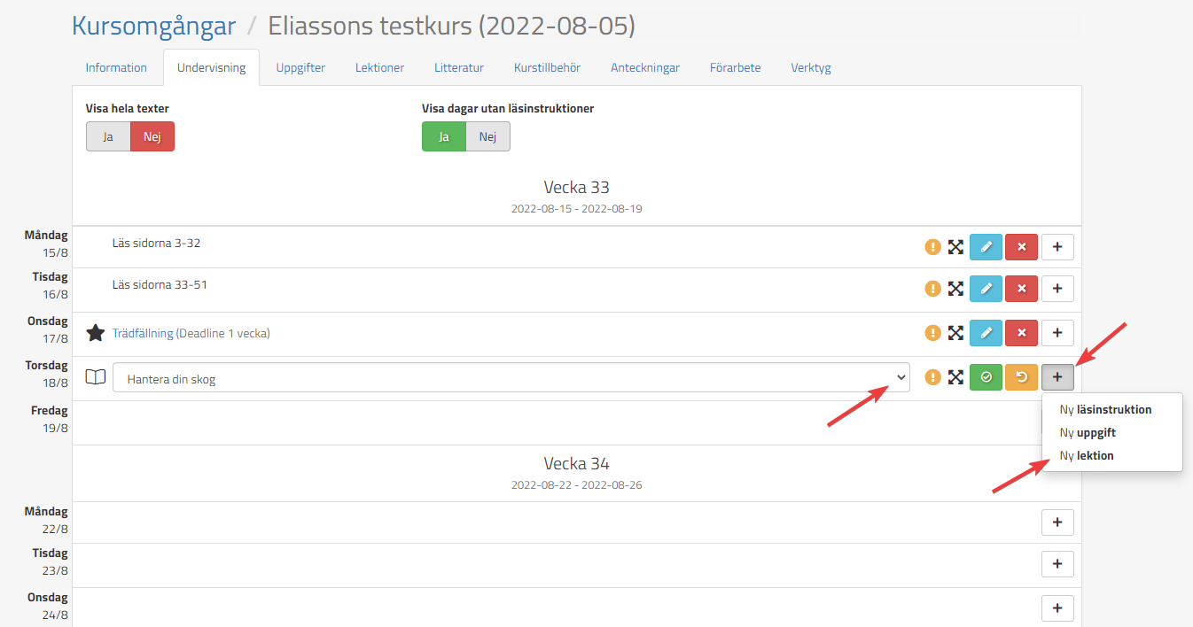 När du är klar med lektionen kan du lägga in den i veckoplaneringen: