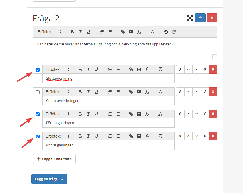 Du kan också välja att skapa frågor med flervalsalternativ, där flera alternativ kan vara rätt.
