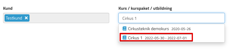 Vid registrering av en kursomgång så går de att urskilja att det är en kursomgång via antingen vad ni har döpt den till eller att ni ser att det är ett start- och slutdatum, se exempelbild nedan: