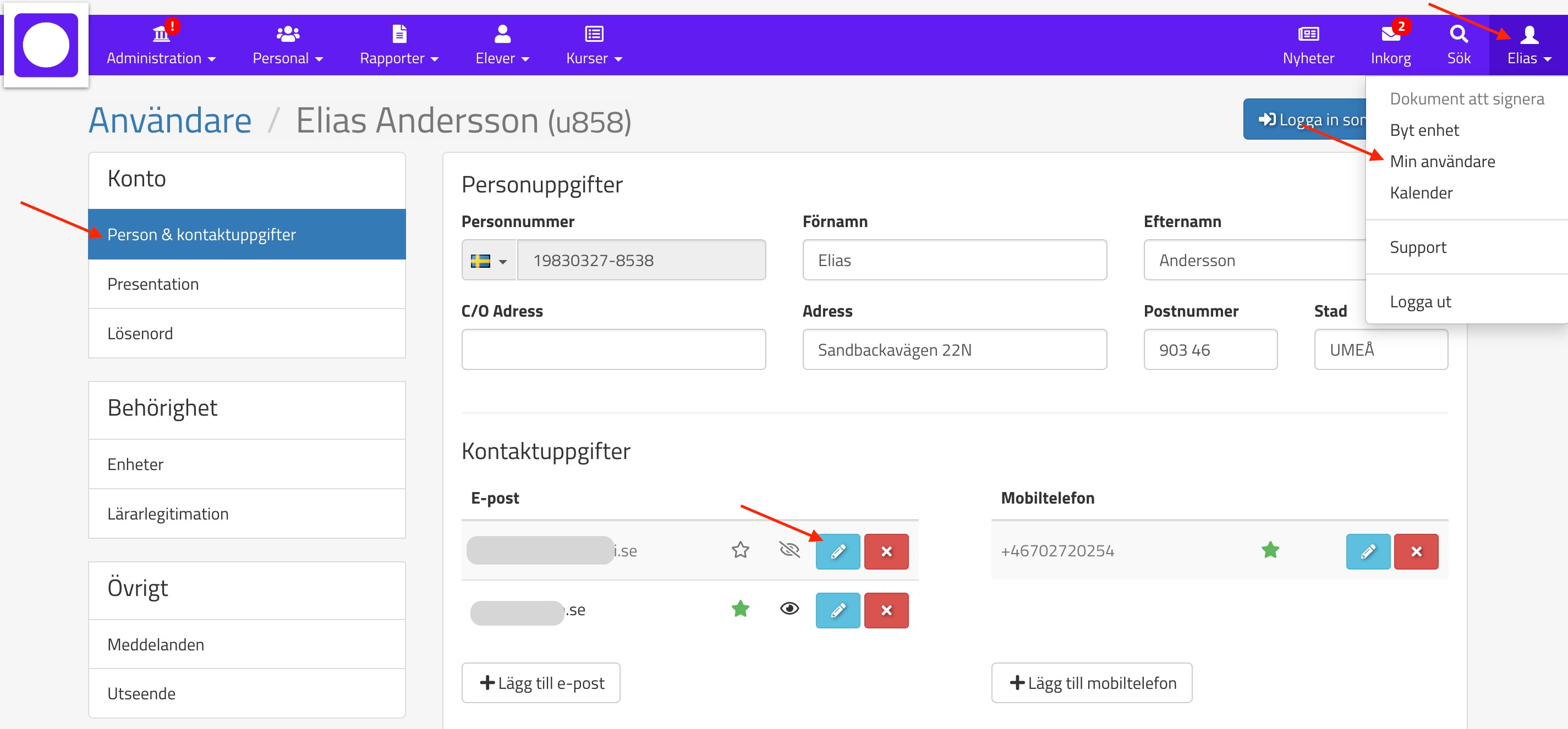 Här kan ni växla vilken epostadress som ska vara er primära: