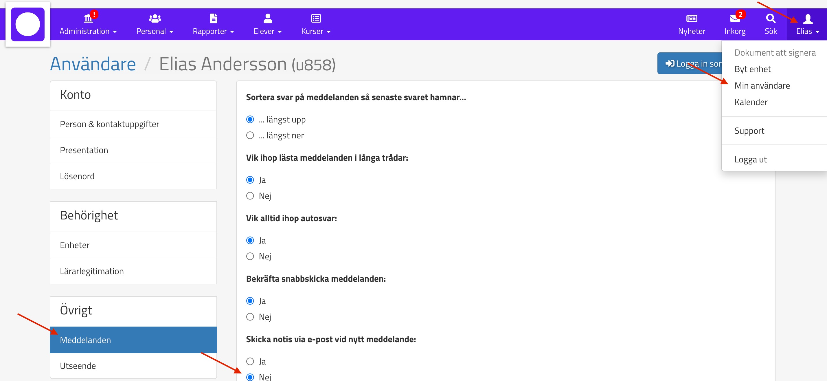 Ni får notifieringar varje gång en studerande skickar ett meddelande i Omniway.