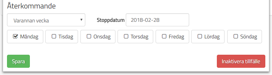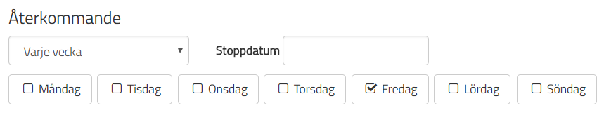 Under "Stoppdatum" så skriver jag in det datum där jag vill att de återkommande provtillfällena ska sluta. Jag sätter 23:e februari som stopp.