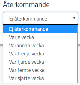 Om man vill att detta ska vara ett återkommande prov så under Återkommande så klickar man på droplisten och då får man fram dessa alternativ: