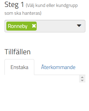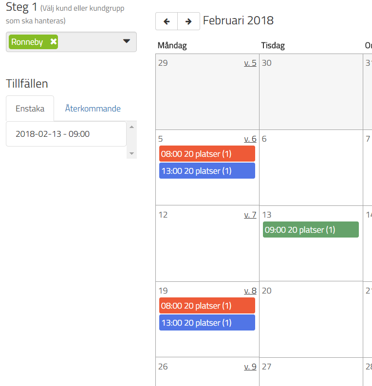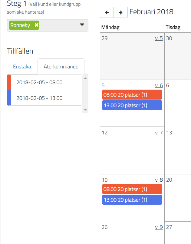 Under "Enstaka" så ligger de enstaka tillfälle som finns planerade.
