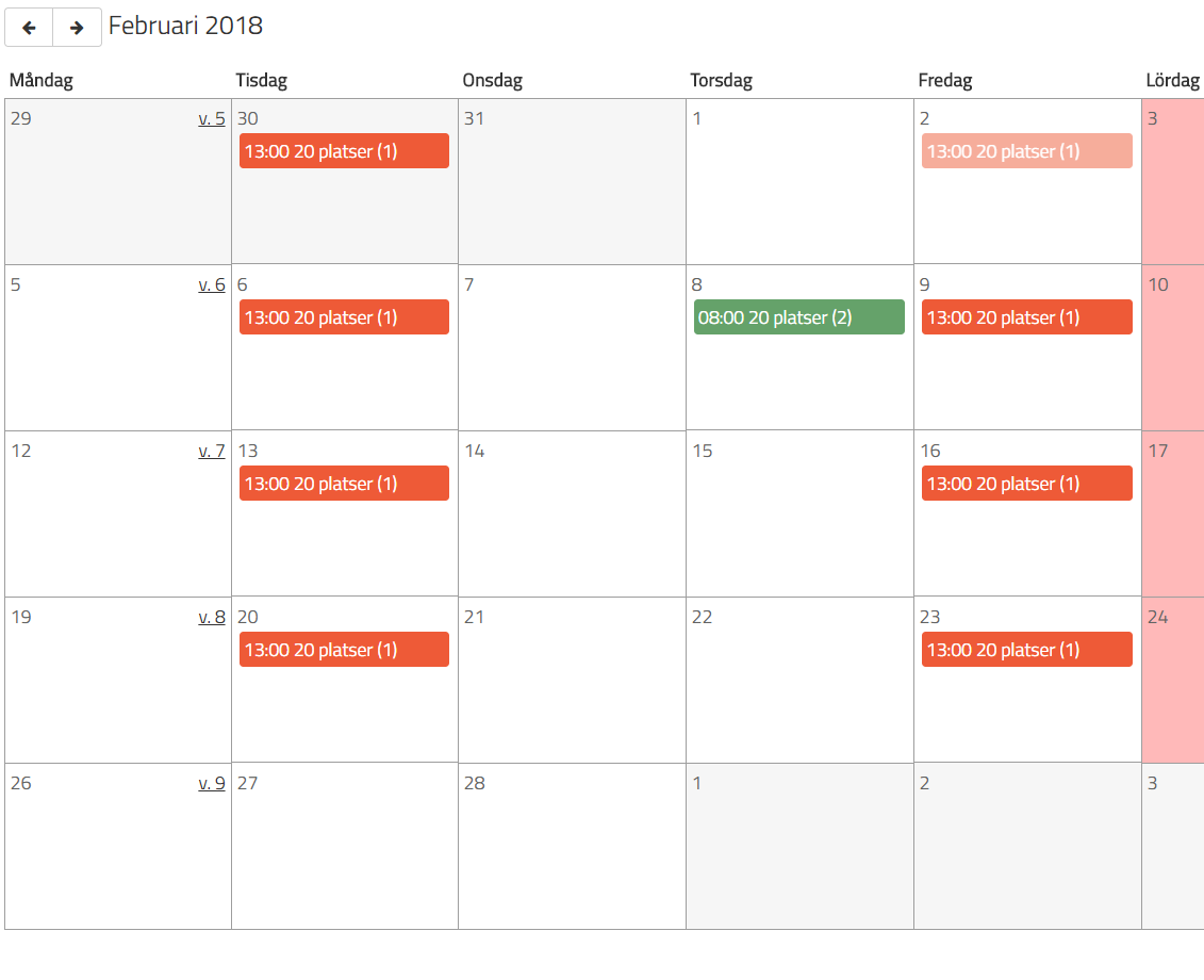 När jag är klar med mina inställningar så klickar jag på Spara. Nu ser min kalender i februari ut så här: