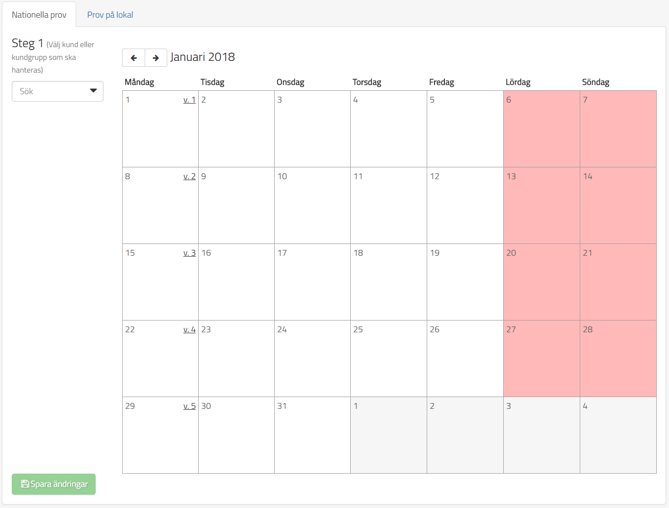 Under Provtillfällen så styr man via en kalendervy både när prov på lokal och nationella prov på lokal ska ske. Det finns två olika typer av provtillfällen till både nationella prov och prov på lokal och dessa är enstaka provtillfällen och återkommande provtillfällen.