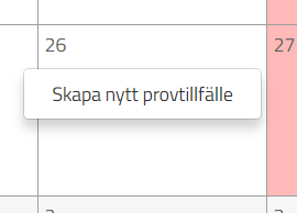 På samma sätt som tidigare så högerklickar jag i kalendern för att skapa ett nytt provtillfälle. När jag klickar på "Skapa nytt provtillfälle" så kommer denna ruta fram: