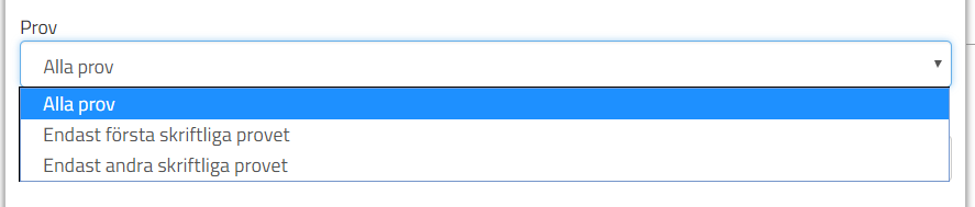 Om det finns en kurs som har flera nationella prov så kan eleven boka in alla dessa prov vid samma tillfälle med inställningen Alla prov.