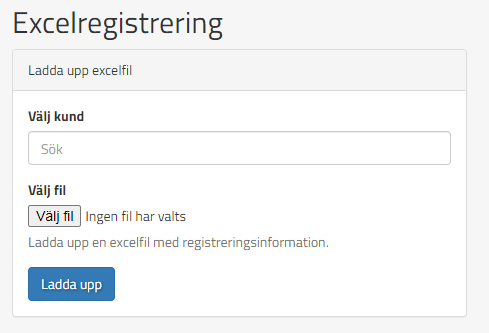 Man börjar med att skriva in vilken kund(ort) de studerande ska kopplas till. Efter det så klickar man på "Välj fil" för att välja den Excel-fil man vill ladda upp. När man valt sin fil så klickar ni sedan på "Ladda upp".