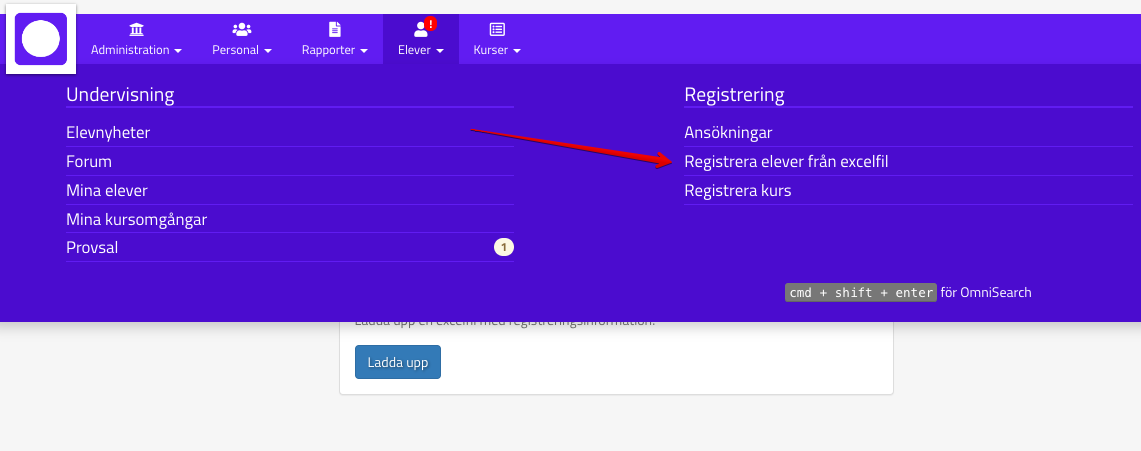 När excelen är klar går ni in i modulen Registrera elever från excelfil: