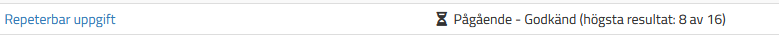 Notera att om eleven redan blivit godkänd men väljer att göra om uppgiften kan du fortfarande se att eleven redan blivit godkänd samt elevens bästa resultat: