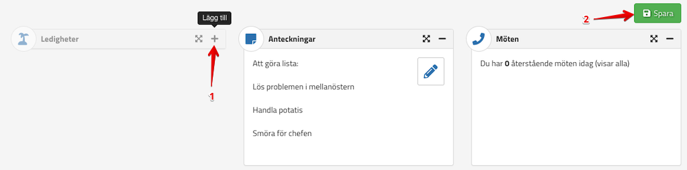 Tryck därefter på plustecknet för komponenten Ledigheter: