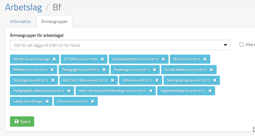 observera att skolledaren behöver stå som ledare för arbetslaget i arbetslagsmodulen samt att arbetslagen behöver tillhöra Ämnesgrupper